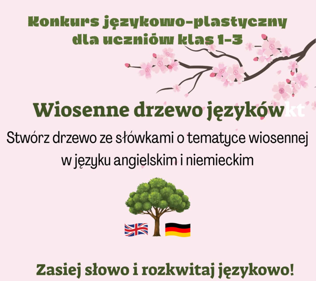 Aktualności Ogłoszenia Konkurs „Wiosenne drzewo języków” 3 marca 20263 marca 2026 Zapraszamy uczniów klas 1-3 do udziału w konkursie „Wiosenne drzewo języków”. Szczegóły znajdują się w Regulaminie. Regulamin Wiosenne drzewo języków
